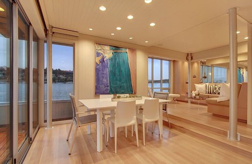 Featured on Discovery Channel's show "Ultimate Homes". 3 bedrooms, 2 baths, totally remodeled, 1000 sq ft, with terrific decks, moorage for boat available, hot tub, high speed internet, cable TV, all utilities, residential parking permit, designer houseboat, prime location at end of the dock. dining room converts into dance floor or yoga studio. dining room table folds into buffet table. stainless steel counters in kitchen. cool coral aquarium over the kitchen sink. enjoy all your water toys such as paddle boarding, sunfishing, kayaking, windsurfing, canoeing.