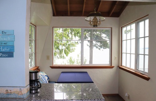 Come rest, relax and be renewed in this charming beach cottage which offers exquisite views across the Bay to Mount Baker, when the grand lady shows herself, and is a haven for eagles, deer and a variety of aquatic life. You will probably view sea lions bobbing in the bay from time to time, and even an orca or two may surprise you as you enjoy breakfast or a coffee on the patio. An easy walk or drive to the beach at Diamond Point.