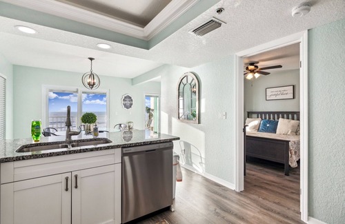 Your perfect vacation home awaits in this Penthouse condo, located directly on the Gulf of Mexico and right across Gulf Blvd from the intercoastal waterway with unobstructed views and access to both!
