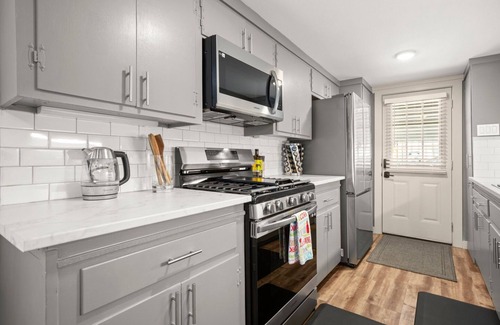 This fully air conditioned 3-bedroom, 2 1/2 Bath vacation home features 3 living rooms, 2 fireplaces, an office, a secondary work space, a fully equipped galley kitchen, and sleeping for 8-10. All bedrooms have smart TVs. The dining table sits 12 and conveniently reverts back to a ping-pong table or pool table as desired.