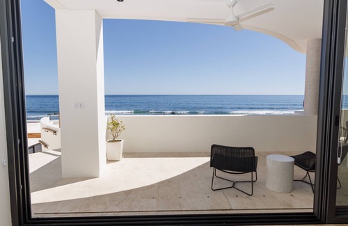 Exquisite 5-star luxury casa offering an unrivaled beachfront experience. Where the pristine beach is your backyard and every moment is a postcard of natural beauty. Pezula Beach is a newly-built (2023), contemporary, private, secure, oceanfront home on the East Cape of Cabo. An eco-friendly, air-conditioned dream home with saltwater pool inclusive of multi colored mood lighting, indoor and outdoor kitchen and dining, marble throughout, 75" inch TV, 3 bedroom suites and 3.5 baths - all with breath-taking views to take in the surf, sun and whale watching. Step off the pool deck and onto the pristine beach where you can enjoy sunbathing, swimming, kayaking, paddle boarding and surfing. Amenities include a ping-pong table, fire-pit, paddle boards, on-site staff to change linens every 3 days. Additional services available upon request. Option to add 2 additional suites in the adjacent property by contacting host. This enchanting getaway is 30 minutes from downtown San Jose Del Cabo and 20 minutes to Flora Farms and Acre farm-to-table restaurants. Shipwrecks surf beach a mile south and La Fortuna surf spot half a mile north with 3 restaurants, Zai Sushi, Lateral and Shade. Leave the world behind and enjoy beachfront luxury along the untouched East Cape coast of Cabo!