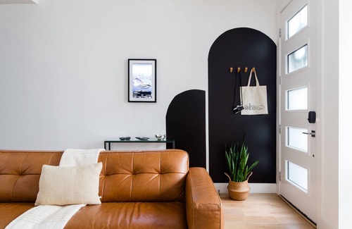 Our Mid-century kitchen is stocked and ready to be enjoyed! The kitchen has electric Kitchenaid stove top/oven, Kitchenaid microwave & dishwasher. Large single sink, 17 cu ft. Fisher & Paykel fridge. Stocked with cooking utensils, bakeware, Caraway pots/pans, Crate & Barrel baking dishes, blender/individual smoothie maker, toaster, coffee maker, coffee grinder, electric kettle and many more! Dine on stylish Crate & Barrel dishes while drinking from West Elm drinkware.