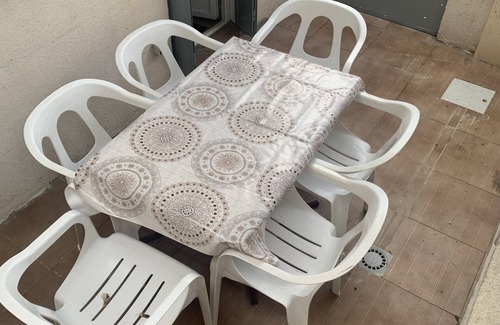 The kitchen is equipped with an oven, a stovetop, and a refrigerator, as well as a coffee maker, an electric kettle, and cookware. Bathroom amenities include towels and toilet paper. And because there's a washer and dryer, you can go a bit lighter on your packing. Other amenities include a living room, bed sheets, heating, and a dining table.