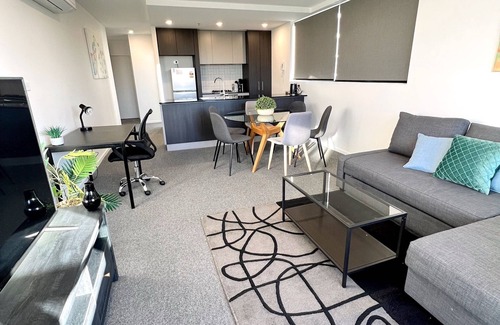 Our fully furnished 2 bed 2 bath apartment is both stylish and modern. We can accomodate up to 6 guests. It has double glazing throughout, a queen bed in each room, a double sofa bed, 2 car spaces, Fast & Free Wifi & large Smart TV (BYOL). A fully fitted kitchen, washer & dryer as well as a big gym and beautiful pool!