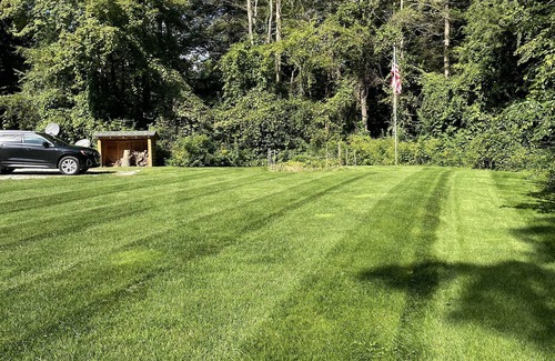 Stunning log cabin in the Berkshires on 10 private wooded acres complete with brand new 4 season hot tub, in-ground pool with electric cover, gorgeous pickleball and basketball court, stunning fire pit perfect for s'mores, relaxing hammock, stocked veggie garden, private outdoor shower, new built in grill, tons of indoor and outdoor games, beautiful screened in porch, stocked gourmet kitchen, radiant heated floors, huge family room with fireplace, finished basement with billiards, darts and big screen TV. 3 gorgeous bedrooms, 3 big bathrooms with beautiful tile work and heated floors, and even 2 extra twin beds downstairs. This is a great getaway from the hustle/bustle. Right near the lake, skiing, town of Great Barrington with great stores and restaurants, Tanglewood, Stockbridge, Lenox, Butternut, theaters, and more. Relax and enjoy! It's all new, furnished and has everything you need for a perfect getaway with just family or with friends from afar.