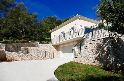 4 bedroom villa in a beautiful olive grove setting with views across the Ionian sea to the mountains beyond. Light and airy open plan interior with modern appliances. Large outdoor terraces with infinity pool, shaded dining deck with bbq and pizza oven.