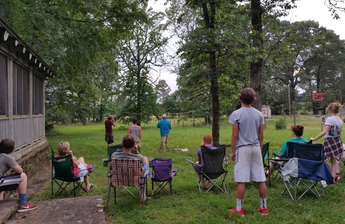 Outside: The large screened front porch includes a large sitting area and a picnic table that seats up to ten. The back porch is cozy with seating for one or two.There are lots of trees and grass with plenty of parking for recreational vehicles. (Fee for hooking RV's to electricity.)
