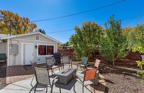 Enjoy the mountain air and peek at Mt Elden from the shared back yard space with fire pit.