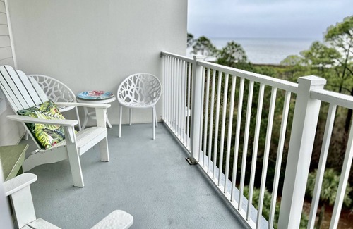 Spacious 5th floor unit with balcony overlooking the Choctawatchee Bay! Offering privacy, bay views from every window, and picture perfect sunsets. This luxury condo meets your vacation needs for a group as large as four. Just outside the ground floor, a lush landscape leads you to the zero entry lagoon pool with two hot tubs and a children’s pool. Walk a couple of minutes more and find yourself in the charming village of