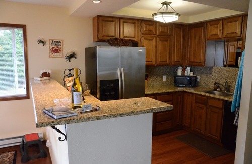 The house is set up with an open kitchen that includes stainless appliances. There are two fireplaces (firewood is NOT provided) and a large deck to watch local boats and the Alaskan Ferry as you sip a hot cup of coffee or a glass of wine. There are 2 bedrooms with queen-sized beds. In addition, we have a spacious daylight basement which includes a wet bar and allows accommodations for up to four more people with a bunk bed and couch.