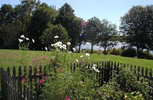 Situated in the East Bay area of Rhode Island, a long tree lined driveway leads you to this charming private family compound with breathtaking setting on the water. Professionally decorated, the home boasts a large wood burning fireplace and gracious comfortable living areas. The master bedroom features a private bath with a four-poster bed and Claire Murray rugs with direct water views. In the Main House there are two additional bedrooms. One bedroom has a brass queen bed and is quite large with direct water views. The other has two twin beds with trundle beds. These two bedrooms share a bath. The large, well-appointed kitchen, with stainless steel appliances opens to a grape vine trellis covered patio that has both gas and charcoal barbeques. The Guest House features a queen bed on the lower level, and a queen bed area along with a private room with two twin beds on the upper level. There are porches overlooking the water on both levels of the Guest House, air conditioning, a bathroom and living area. Both the Main House and Guest House overlook Nannaquaket Cove which opens to the Sakonnet River and Mt Hope Bay. The home is outfitted with kayaks, a blow-up paddleboard and canoe. There are indoor and outdoor games and a "boat load" of water toys and floats. There's also a badminton, volleyball and croquet set. The front wraparound porch and vine covered patios offer outdoor shade on hot summer days. There is an enclosed outdoor hot water shower for washing off sand from the nearby ocean beaches. The home is perfect for three generation holidays with the youngest generation in the Guest House and private rooms in the Main House. Portable and breakdown cribs are available as well as a high chair and knock down indoor and outdoor playpen.