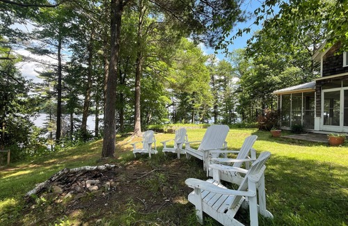The cottages are located on their private island called Sheep Island. Charleston Lake Provincial Park surrounds it. You can enjoy a comfortable cottage while exploring the island's two hectares of mature forest and its diverse ecosystem. On the waterfront, you will see a small beach, a dock, a floating raft, and a Tarzan rope. You can also grab a canoe, kayak, paddleboard, or rowboat to explore the lake.