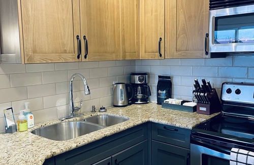Your living room is complete with a cozy natural gas fireplace and a Smart TV (with cable). You can use your smart phone to share all your epic adventures with your family on this newly updated TV. Another wonderful place to relax and unwind! Fast and reliable WIFI is available throughout the unit.