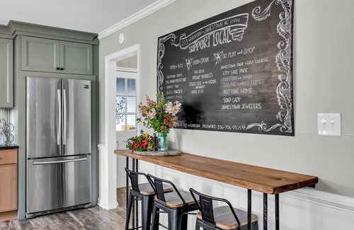 Best-rates for the Jamestown house starts from $865 per night with includes Parking, Internet, Child Friendly, Air Conditioner, Security/Safety, Sports/Activities, Fireplace/Heating, Guest Services, Kitchen, TV, Entertainment, Barbecue/Outdoor Cooking, Balcony/Terrace, Bedding/Linens, Wellness Facilities, Laundry with all other facilities. Vacation Cottage™ provides a diverse array of lodging choices for every kind of traveler. We aim to pair each traveler with their ideal cabin, resort, or rental, ensuring a pleasant and satisfying stay with all necessary amenities.