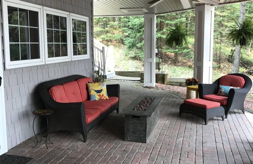 This (3) bedroom 3 king beds, TV’s in all bedrooms, (2) bathroom, 2700 square ft, non smoking cottage has an open main level with a vaulted ceiling. It is equipped with central air, washer, dryer, (2) dishwashers, in-floor lower level heat, ice machine, glass froster/freezer, (2) pizza ovens, earth stove and a stone fireplace. Enjoy the 1000 square ft upper deck offering stunning views in the day and lighted ambiance at night. The lower level entertainment area allows you to have fun playing darts, watching Direct TV, playing Wii or relaxing at the custom built bar that overlooks the beautiful lake. The outdoor living/grilling area not only allows you to relax and take in the beautiful scenery, it provides an outdoor grilling island where you can prepare your favorite meals in this stunning granite top/stone constructed Char-grill complete with overhead stainless steel spark arrester.
