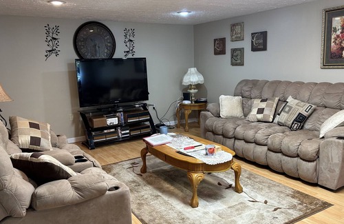 A & B Trail House has comfortable beds in a clean peaceful setting. Two driveways, lighted carport, free fire wood, fire pit, 18-20 Screened-in Porch, Fully Stocked Kitchen n Bath. Store n Gas Close. A & B Trail House is conveniently located and it’s your home away from home. New mattresses and clean linen is constant. Pad locks, motion lights, fire alarms and extinguishers offer security. A large living room and back porch provide plenty of room for card playing, game board activities, TV watching, texting or talking and planning. A washer n dryer is available for 15 dollar for those who stay at least three nights. Four TVs use streaming through high speed internet. Phone calls and text can be received through the high speed Wii-Fi. and business and personal connections can be made. Too many amenities to name at A & B Trail House. A Dollar General is 2 miles from A & B and Gas is close too. Rates are very reasonable, beds are comfortable and the house is really clean. Come Stay @ A&B