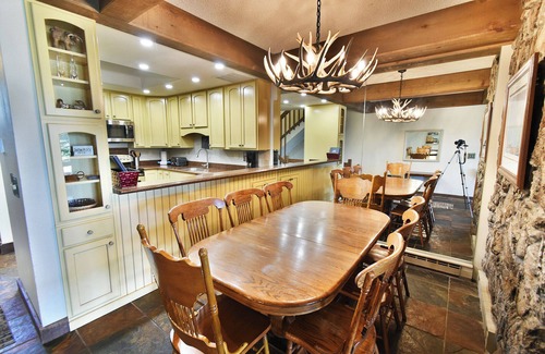 Chateau Acadian 101 is a very spacious 4 bedroom, 3 bath townhouse near Keystone Resort. Updated beds, linen, fixtures, baths, kitchen and flooring. Large windows with mountain views. Sleeps 10. A fun kid property with pack n play and high chair. Complex has lots to explore and extensive grounds with wood boardwalks and fun nooks and crannies. Vaulted ceilings, slate and hardwood floors, slab granite counter-tops. Free WiFi and cable. Flatscreen in large living room with new furniture, large stone wood fireplace and wet bar. Stainless steel appliances in the fully equipped kitchen with drip coffee maker. Dining table seats 8. Full size washer and dryer in unit for convenience. Private deck with dining table for 4, side table for 2 and 2 Adirondack chairs.