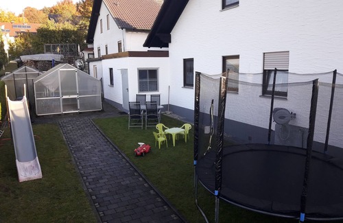 In our inviting, child-friendly apartment on the 1st floor of our quietly located apartment building on 85sqm, there is enough space to relax. The equipment includes a fully equipped kitchen, which is open to the cozy living and dining room. Two separate bedrooms are provided for dreaming. The bathroom is equipped with a shower, tub and underfloor heating. The separate toilet completes the sanitary area. For the nice days there is a sunny, covered and furnished south-facing balcony with awning and a garden area, of course with garden furniture, gas grill and various. Play equipment for the little ones.