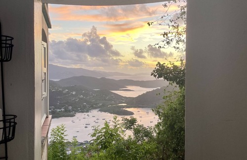 Waterlemon Villa is a private 3BR, 3BA vacation home located on the hillside overlooking Coral Bay, St. John. At 700 feet above sea level, this casually elegant retreat is high enough to capture the breezes of the trade winds and close enough to the harbor to watch the sailboats come and go. The breathtaking 50-mile view up the Sir Francis Drake Channel extends all the way to Spanishtown Harbor on the southern tip of Virgin Gorda. Two queen bedrooms downstairs and one bedroom upstairs with two twin bunk beds accommodate up to eight people. While opening the sliders and letting the amazing trade winds cool you off will always be a wonderful option, we also have air conditioning in each bedroom to keep all our guests comfortable throughout the year. Waterlemon Villa is a unique property in St. John because everyone is housed under one roof, connected by an indoor staircase, making it ideal for families! However, the privacy of the location and pool make it just as enticing for a honeymoon couple or an anniversary trip!