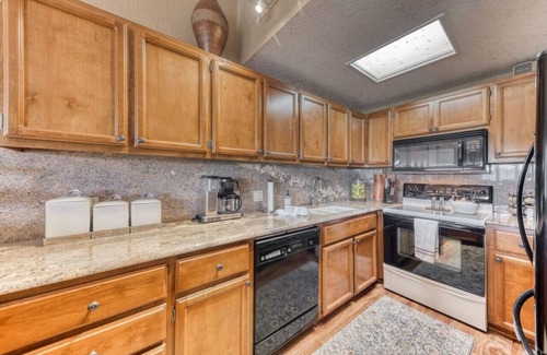 Fully Equipped Kitchen: The updated kitchen features all-new appliances, including an electric range with oven, microwave, refrigerator, and dishwasher. With gorgeous granite countertops and a large island bar, it`s a chef`s delight. Guests can indulge in their favorite coffee or tea at the designated coffee station in the kitchen, complete with a Keurig and drip coffee makers, along with a selection of coffee, teas, and sweeteners.