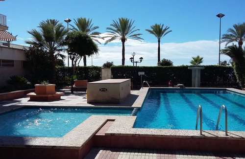 The apartment is a ground floor that communicates with the community area (swimming pools and garden). It has everything you need to enjoy a great vacation. It has three double bedrooms, two bathrooms with bathtub, living room with a sofa bed, two terraces: a very large front and a rear of service that overlook the community area allowing if there are children who can play with others controlling perfectly from the terrace.