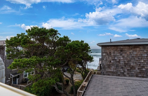 This exquisite coastal retreat along the beach access path at Bella Beach will set you up for an excellent stay on the Oregon Coast. Multiple decks with astonishing views down to the beach and a sky-high crow’s nest reading area put you above it all, but you’ll also enjoy the ground-level perks at Bella Beach, with its Cape Cod-style architecture, mature plantings, children’s playground, fire pit, and tasty treats at Café C’est la Vie.