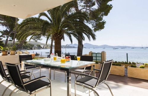 A beachfront apartment with a fabulous terrace on Puerto Pollença's pine walk.