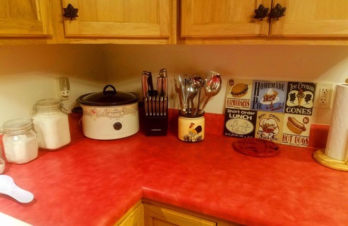Central heat/AC. Exceptionally equipped kitchen. Spices, flour, sugar & salt for bakers, coffee maker, filters, crockpot, Brita water filter, dishwasher, dishes, pots & pans, cast iron skillet and dutch oven, electric mixer + bakeware!
