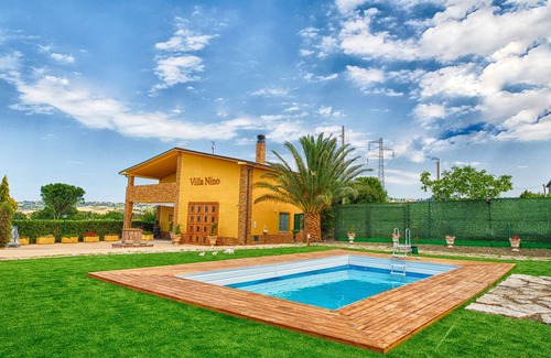 Villa Nino is situated in an absolutely idyllic location with plenty of privacy between Termoli and Vasto on the east coast of Italy. The barrier-free holiday home has a cozy living room, a home theater area with two single beds, a fully-equipped kitchen, 2 bedrooms (one with a double bed and the other with one double bed and two bunk beds plus a cot), as well as one bathroom. It therefore can accommodate 8 people.The child-friendly holiday home is also equipped with Wi-Fi, air conditioning, a fireplace, cable TV, a fitness studio, a baby cot, a cot and a highchair. An absolute highlight is the personal home theater, which is equipped with a sound system for CDs and DVDs and provides for entertaining evenings. In the outdoor area you will find a pretty garden with a pool, which is idyllically lit at night. Enjoy meals together under the covered terrace with a barbecue, sunbathe on one of the deck chairs by the pool or let the evening end with a glass of wine under the starry sky. In 12 minutes you can reach the shopping centre Insieme and after only 13 minutes by car you will find the centre of the village San Salvo, which offers a variety of restaurants, bars and cafés. The sandy beach Marina di Petacciato is 11 minutes away by car and provides bathing fun for the whole family.