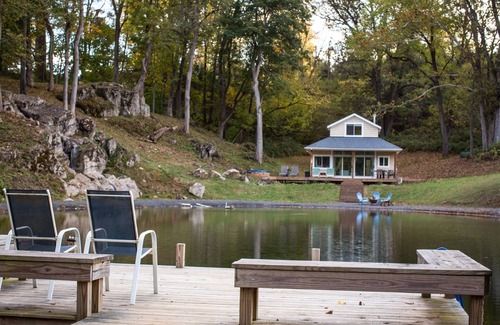 A Perfect Fantasy Escape. The 650 sq ft Cottage is beautifully secluded on 10 acres with a private pond. Sit in the hot tub and watch the waterfall cascade into a rock pool and flow into a beautiful 15,000 sq/ft lined swimming pond. The expansive porch and deck are perfect for catching the sun; dining under the stars; hanging out with friends; reading your favorite book...you name it and it will be as good as anything you've imagined. The beach has a zero depth entry for lounging or playing in the water. Inside this gem you will find everything you need for a delightful stay: From the leather lounge and viking bed you can watch the fireplace or the large flat screen TV to the rainfall shower with natural stone and tile. Only a two minute walk from the scenic Shenandoah River. Skyline Drive, hiking and biking trails, 100 holes of golf, shopping, restaurants only 10-20 minutes away!