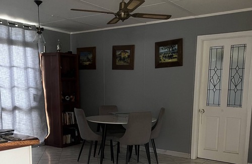 Quiet rural setting with luxury of only mins away from town centre , with loads to see and do . Winery’s , Gift shops cafes , museums or just sit back and relax at the farm with horses , lambs , sheep pigs and a few birds .