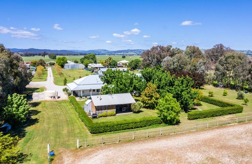 Large beautifully appointed Farm house and gardens, with all the modern conveniences. Set on 8 hectare farm , whilst being 500 m walk to regionally acclaimed Cafe and Pub and the gateway to the King Valley Wine region. Enjoy the best of both worlds.