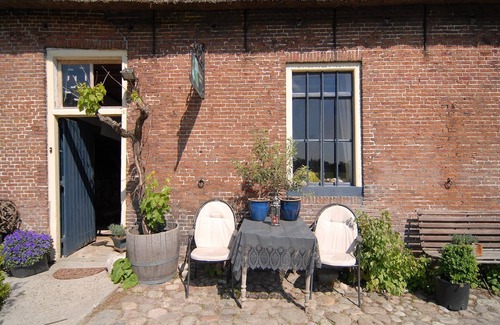 On the river Lauwers, near the 'Green Coastal Route,' lies the Lauwerspleats, a historic head-neck-torso farmhouse with a thatched barn built in 1651 by monks of the nearby Girkesklooster. The farmhouse sits on its own mound, with limited accessibility for disabled guests. Guests can swim in the river year-round and use a rowing boat with motor for trips on the Lauwersmeer. Cycling enthusiasts have access to men’s and women’s touring bikes, and a special 'Danske Post' transport bike for picnics.
