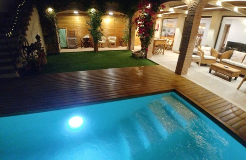 FAMILIES ONLY. Rural house in Penedès (Catalonia). Renovated farmhouse located in the village of Sant Pau d'Ordal, with 5 bedrooms and a beautiful porch-covered courtyard with a pool. Here, you can feel secluded, enjoy a peaceful calm while being close to destinations like Vilafranca, Barcelona, Sitges, or Montserrat. The Penedès is known for the quality of its wines and offers a wide range of tourist activities. > No parties, speakers, or music devices allowed. There are neighboring houses nearby, so quiet hours must be respected