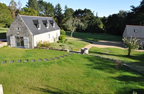 19th century farmhouse on a large green plot 50 m from the Odet. A house is composed of a living room, kitchen, a bedroom and two bathrooms. A second house accommodates four other bedrooms and two bathrooms. A converted barn accommodates a bedroom with shower and a games or reception room. Adjoining terrace for lunch outside in fine weather. Absolute calm. Large terrace with jacuzzi and brazier.