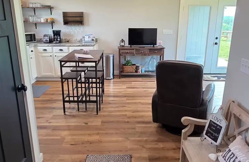The Little Red Farmhouse and Rustic Patio is a place for all to enjoy. Whether you're looking for a romantic getaway, a place to come from a day of floating on the river or just want to escape to the country for some peace and quiet or a little R&R, this small and cozy place will not disappoint. The views are spectacular from inside the Farmhouse and from the large Rustic Patio. There is plenty of wildlife around this farm.