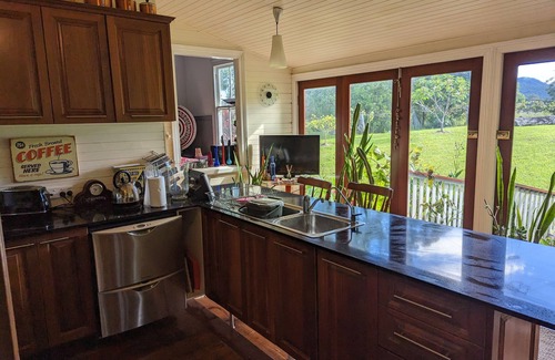 Enjoy our little patch of heaven in the hills of North Boambee Valley. Look out onto our sprawling farmland complete with fruit trees, cows, native bushland, and distant views of the ocean, yet only a 10-minute drive to Coffs Harbour centre, and 15 minutes to the airport or beaches. Chill out on the large verandahs on a summer's evening or cozy up next to a slow-combustion fire at night.