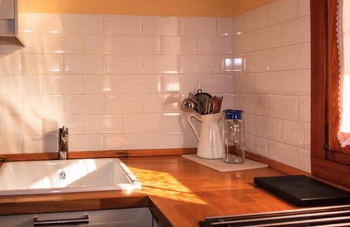 Studio of 36 m². Capacity 2 or 3 people. Full equipped. 1.50 m bed. 1.35 m sofa bed. Full kitchen, washing machine, ceramic hob. Fridge, microwave, dishwasher. Pellet stove. Private outdoor parking 500 m² of meadow and pomarada. Ground floor, exit Jardin. Chestnut forest views. Barbecue. Wifi. Adapted for the disabled. Outdoor Jacuzzi