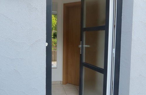 Our cozy neat apartment offers a fully equipped kitchenette (incl. Tchibo Cafissimo, toaster), bedroom with double bed, living / dining room with 2 sleeping possibilities and satellite TV, bathroom with shower. Direct access to the terrace south orientation with a vision towards Luxembourg. A Wi-Fi connection is available. It enjoys a quiet sunny location, parking at the house. The center can be reached in 10 minutes. There are doctor, dentist, pharmacy and grocery store. The bike paths along the rivers Sauer and Mosel, as well as the border of Luxembourg is reached by car in no time.