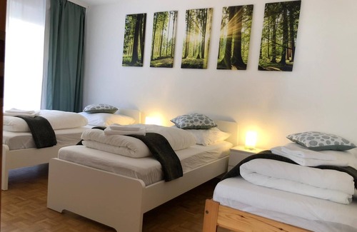 You will find in our apartment a fully equipped kitchen with all necessary electrical appliances and utensils and a shower room and two bedrooms for up to six people. The garden offers opportunities for cozy barbecues. A parking space for your car is available free of charge. A supermarket and a bakery can be reached on foot within a few minutes. If you still miss something, we are at your disposal for any request.