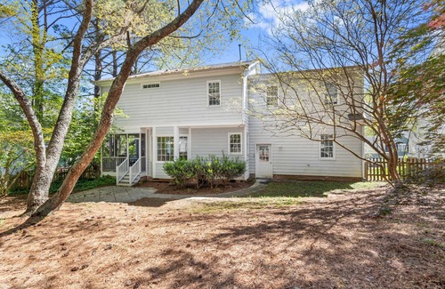 Beautiful and spacious Apex 4 bedroom 2.5 bath home. Multiple outdoor seating spaces including the screened in back porch that looks out to the fully fenced in backyard.