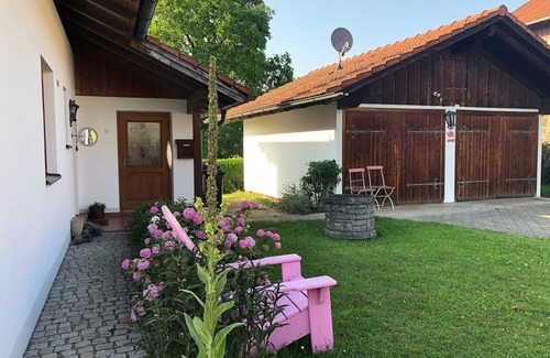 Unser sonniges, hübsches Ferienhaus mit Gartenhaus und Seeblick bietet das ganze Jahr alles, was Sie zum Wohlfühlen im Urlaub in Oberbayern brauchen. Das Haus, das Ihnen von morgens bis abends Sonne bietet, liegt ca. 200 m vom Waginger See, den wärmsten Badesee Bayerns, mit Blick auf den See und die Umgebung. Die Strandbäder sind in unmittelbarer Nähe. Das Nichtraucherhaus mit See- und Bergflair befindet sich in einer wunderbaren Landschaft. Sie bewohnen das Einfamilienhaus mit Garten alleine; die Wohnung ist im Erdgeschoß. Die schöne, überdachte Terrasse zur Seeseite lädt zum Relaxen ein. Fühlen Sie sich wie zuhause bei uns in Bayern zwischen Bergen und See. Dazu bietet Ihnen ein großes Holzblockhaus im Garten die Möglichkeit zum Grillen, Spielen oder auf der Veranda zu sitzen und den Sonnenuntergang am See zu genießen. Das Haus ist ideal für 2 Personen, auch mit Baby oder 2 Kindern. Für Senioren ist unser Gästehaus ebenfalls bestens geeignet. In der Nähe befinden sich Spazier- und Panoramaradwege, der See, Strandbäder und Gasthäuser am See. Dorfkramer, Bank, Tankstelle, Friseur und ein Wellnessgarten mit Saunalandschaft befinden sich ebenfalls in unmittelbarer Nähe. Schöne Ausflugsziele ob Berge, weitere Seen, Städte oder andere Urlaubsorte: hier fühlen Sie sich, egal ob im Sommer- oder Winterurlaub, wohl. Im Anglerparadies Waginger See können Sie mit Angelschein als Hobby- oder Sportangler selbständig vom 1. Mai bis 1. Oktober fischen. Ebenso werden auf Anfrage geführte Angeltouren für Gäste durchgeführt. Infos und Kontaktdaten erhalten Sie bei uns oder in der Tourist-Info Waging.