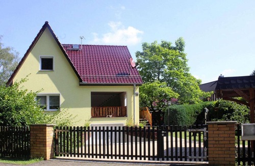 "Newly renovated, modern holiday home with WiFi, in a quiet location in a residential area in the district of Kummersdorf. Surrounded by a wonderfully wooded landscape and only 200 meters from the Storkow Canal with fishing opportunities, you can spend wonderfully relaxing holidays here. And if the weather doesn't cooperate: The spacious terrace is completely covered and therefore also suitable for nice barbecues on rainy days. In the small town of Storkow, the old town and the market with its adjoining streets and the town's landmark, Storkow Castle, form the historic center of the town. So if the cottage kitchen should stay cold, just let yourself be pampered in one of the various restaurants and cafes.Highlights included: WLANActivities nearby: Take a nice bike ride on the towpath on the Storkow Canal, through Philadelphia over the Luchwiesen to Storkow or accompany the ""companions of the night"" and the night watchman through the old and dreamy streets of the city. Due to the central location of your holiday home, you are spoiled for choice for further city trips to Wendisch-Rietz, Königs Wusterhausen or the capital Berlin. On warm summer days, Lake Wolzig offers the best opportunities for swimming and relaxing. A visit to the nature-loving MitMachPark Irrlandia should not be missed in your holiday planning. A great experience and certainly an eventful day for the whole family. You can relax and unwind in the SaarowTherme, which is one of the most modern thermal brine baths in Germany and is an extraordinary pleasure at any time of the year. About Belvilla At Belvilla, you experience holidays exactly the way you want. Choose from an extensive range of holiday homes, apartments and caravan parks from Europe to Florida. From a cabin by the Norwegian fjord to an exclusive villa on the Côte d'Azur, and from an apartment in Rome to a country estate in Tuscany. At Belvilla you will find the perfect holiday home for an unforgettable time with your family, partner or friends. You will also find holiday homes for larger groups, spread across various regions in Europe. Belvilla offers a wide variety of holiday homes: small and cosy with a sauna or spacious with an outdoor pool, roof terrace and numerous bedrooms. At Belvilla, for example, you can choose from holiday homes in prime locations, with luxury amenities and homes particularly suitable for families. Of course, many holiday homes also have a space reserved for your dog. You can choose from practical holiday homes in popular holiday destinations, city houses in cosmopolitan cities such as Venice or Rome, dreamy holiday homes in top locations and spacious holiday homes with unique furnishings. Besides holiday homes by the sea, Belvilla also offers holiday homes with swimming pool and/or wellness facilities."