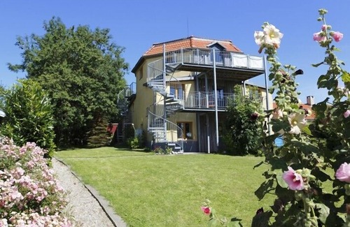 The apartment is on the first floor of a privately owned former mill tower. The historic building from 1883 was extensively renovated and decorated in a contemporary state shifted from 2006 to 2007. The former windmill is situated on a vast garden with lawns u. Flowering plants.