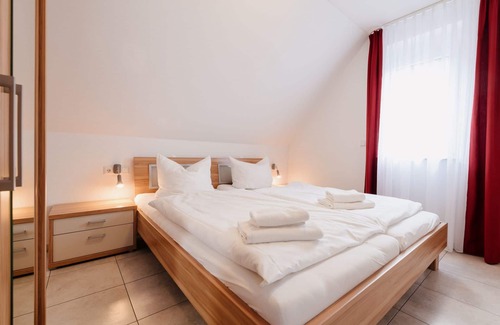 Die moderne ca. 38 qm große Ferienwohnung ist mit vier Sternen klassifiziert und bietet Platz für 2 Personen. Im Schlafzimmer befinden sich Doppelbett und ein geräumiger Schrank. Der Wohnbereich ist mit einer gemütlichen Ledercouch, Ledersessel, einer voll ausgestatteten Küchenzeile, sowie einer Essecke ausgestattet. Das Badezimmer verfügt über eine Dusche und WC. Die komplette Wohnung verfügt über eine Fußbodenheizung und elektrische Rollläden. Eine Anmietung für Monteure ist nicht möglich. Unter folgendem Link sehen Sie die Ferienwohnung im Video: https://www.youtube.com/watch?v=N6oFi46N-WQ
