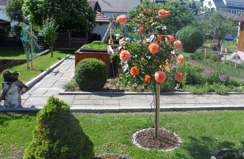 Gemütlich komfortabel ausgestattete Ferienwohnung. Das Wohnzimmer ist mit Kaminofen, Kabel-TV mit DVD. Modernes Schlafzimmer mit TV. Beide Zimmer sind mit Laminatböden ausgelegt. Im Schlafzimmer kann man problemlos 1- 2 Kinderbetten zustellen. Helle ansprechende Eingangsdiele mit Schuhablage. Tageslichtbad mit Waschmaschine. Bestens ausgestattete Wohnküche - Massivholz Front, mit Spülmaschine, Kühlschrank, Mikrowelle uvm. Diele, Küche und Bad sind mit Fliesenböden ausgestattet. Balkon zum Entspannen mit Treppenabgang in den Garten zur Mitbenutzung mit 2 Schaukeln, Rutsche, Sandkasten etc. Die Umgebung ist ruhig. Im Umkreis von max. 300 m finden Sie Supermarkt, Bäcker und Metzger.