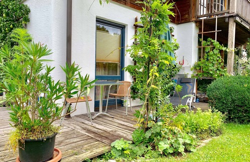 In einer ruhigen Seitenstraße in Wildenwart mit Blick in den Obstgarten finden Sie unsere ebenerdige und ansprechend eingerichtete Ferienwohnung mit Süd- und West-Terrasse. Die Wohnung verfügt über einen eigenen Eingang, WLAN, Grillmöglichkeit, Fahrradunterstand, und Stellplatz sind vorhanden. Wildenwart liegt ca. 3 km ausserhalb von Frasdorf. Wir bitten um Verständnis, dass Hunde in unserer Ferienwohnung nicht erlaubt sind.