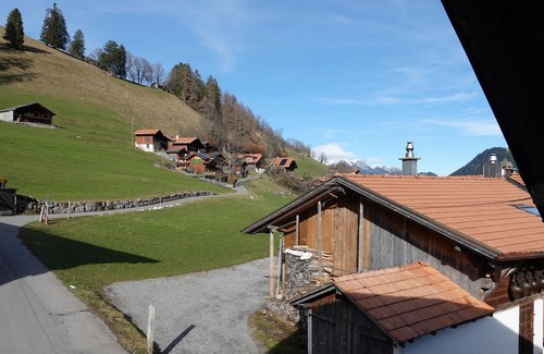 Living room with TV, dining table and sofa. Cosy holiday flat in a farmhouse, in a quiet location. Small and simple kitchen with dining table. Small balcony with table and 2 chairs (additional folding chairs available) Bedroom 1 with a double bed and a youth bed (140 cm) Bedroom 2 with a double bed. Bathroom with bathtub and separate shower. Public transport included in the Simmental and Saanenland with the SIMMENTAL CARD: Overnight guests in the Lenk-Simmental holiday region travel free of charge on public transport for excursions with a valid guest card.
