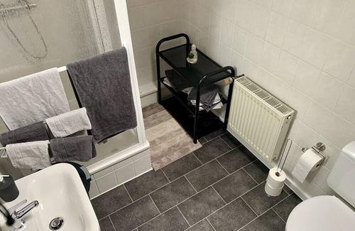 A living room and a sofa bed are featured at this 2-bedroom, 1-bathroom rental. Bathroom amenities include a hair dryer, towels, and toilet paper. The kitchen is equipped with an oven, a stovetop, and a refrigerator, as well as a coffee maker, an electric kettle, and a microwave.