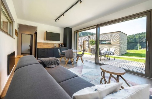 Ferienwohnung mit Barrierefreier Dusche und Terrasse mit Blick auf Hirschgehege | Apartment in Georgenberg
